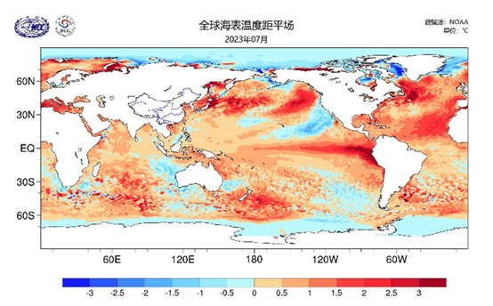 海洋監(jiān)測方面,2023年7月,赤道太平洋大部海表溫度(SST)較常年同期偏高,東太平洋暖水中心偏高2.0℃以上。Ni?o3.4區(qū)海溫指數(shù)為1.11℃,較上月上升0.18℃,最近3個(gè)月(5月至7月)指數(shù)滑動(dòng)平均值為0.84℃。監(jiān)測數(shù)據(jù)表明,目前赤道中東太平洋維持厄爾尼諾狀態(tài)。