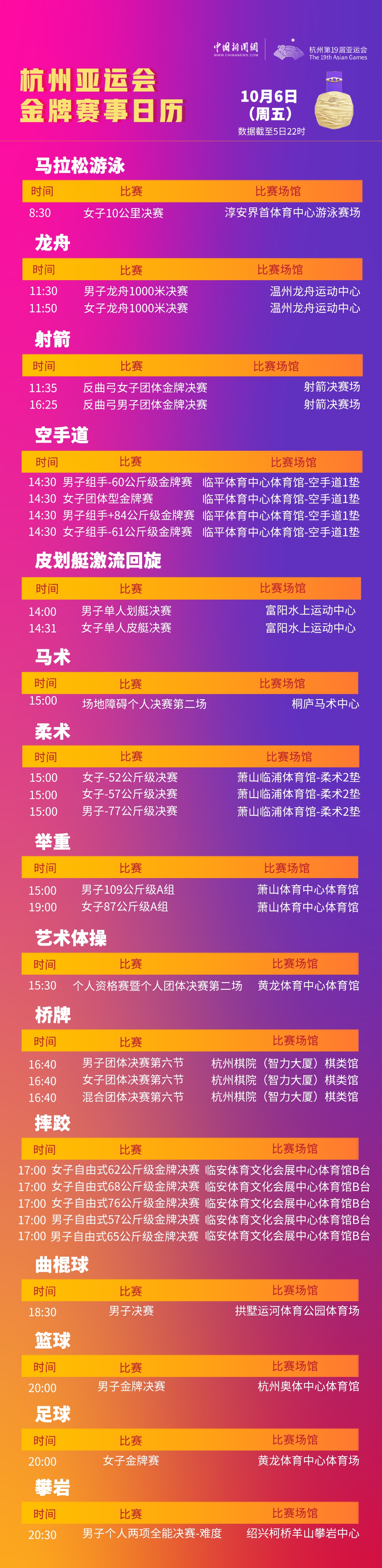 杭州亞運會6日金牌賽程:30金懸念待解 霹靂舞開賽