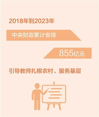 2018年到2023年中央財政累計安排855億元引導教師扎根農(nóng)村、服務基層