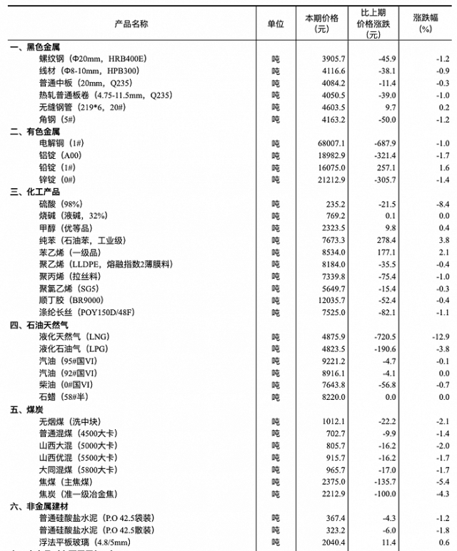 央視網(wǎng)消息:國家統(tǒng)計局發(fā)布2024年1月中旬流通領(lǐng)域重要生產(chǎn)資料市場價格變動情況,詳情如下: