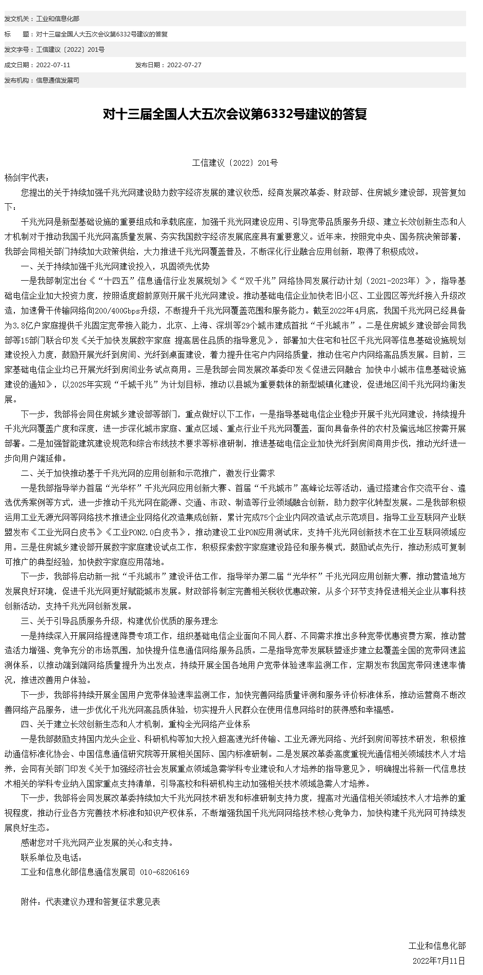 中新網(wǎng)7月27日電 工信部網(wǎng)站27日發(fā)布對十三屆全國人大五次會議第6332號建議的答復。工信部表示,將指導基礎電信企業(yè)穩(wěn)步開展千兆光網(wǎng)建設,持續(xù)提升千兆光網(wǎng)覆蓋廣度和深度,進一步深化城市家庭、重點區(qū)域、重點行業(yè)千兆光網(wǎng)覆蓋,面向具備條件的農(nóng)村及偏遠地區(qū)按需開展部署。加強智能建筑建設規(guī)范和綜合布線技術要求等標準研制,推進基礎電信企業(yè)加快光纖到房間商用步伐,推動光纖進一步向用戶端延伸。(中新財經(jīng))