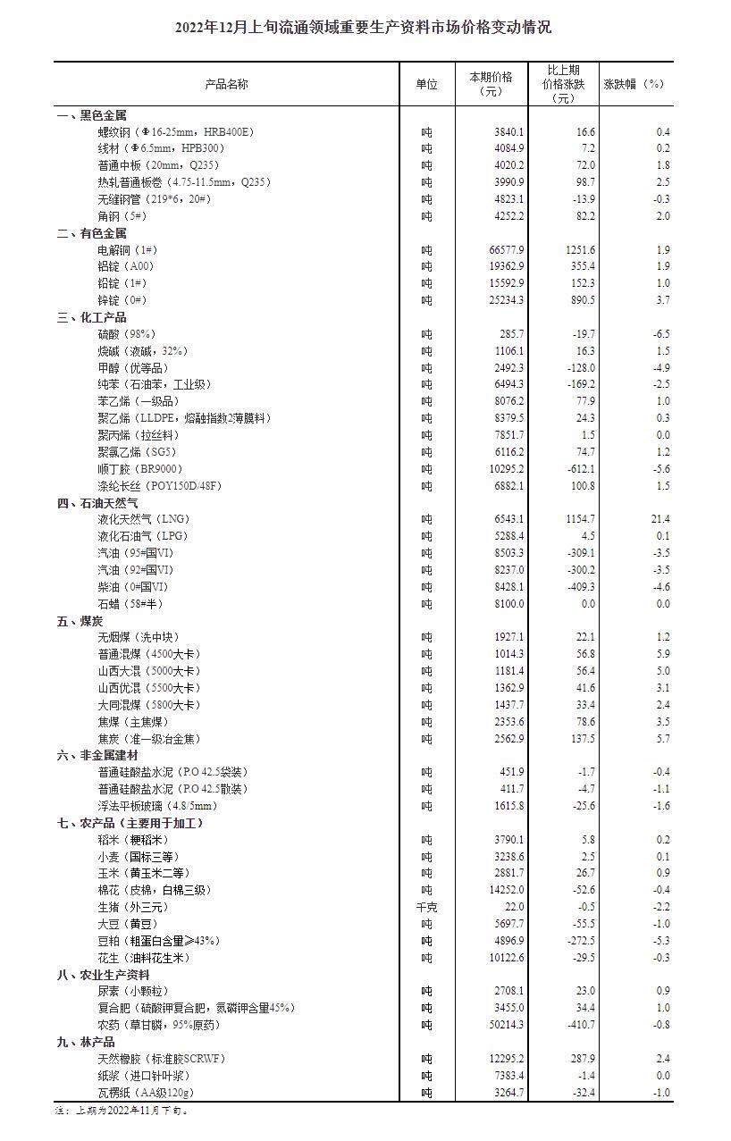 中新網(wǎng)12月14日電 國(guó)家統(tǒng)計(jì)局網(wǎng)站12月14日公布2022年12月上旬流通領(lǐng)域重要生產(chǎn)資料市場(chǎng)價(jià)格變動(dòng)情況。據(jù)對(duì)全國(guó)流通領(lǐng)域9大類50種重要生產(chǎn)資料市場(chǎng)價(jià)格的監(jiān)測(cè)顯示,2022年12月上旬與11月下旬相比,29種產(chǎn)品價(jià)格上漲,18種下降,3種持平。其中,生豬(外三元)價(jià)格為22.0元/千克,環(huán)比下降2.2%。(中新財(cái)經(jīng))
