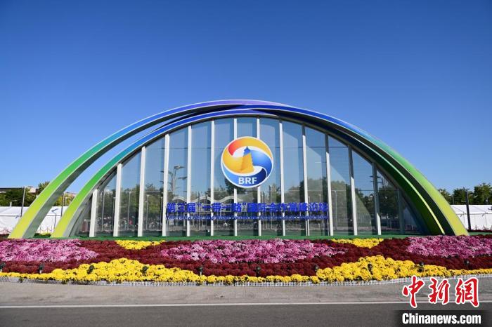10月15日,北京,國(guó)家會(huì)議中心外的第三屆“一帶一路”國(guó)際合作高峰論壇景觀(guān)布置。當(dāng)日,位于國(guó)家會(huì)議中心的第三屆“一帶一路”國(guó)際合作高峰論壇新聞中心啟動(dòng)試運(yùn)行?!≈行律缬浾?田雨昊 攝