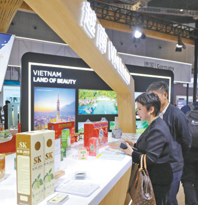11月6日,參觀者在第六屆進(jìn)博會國家展越南展臺挑選商品。