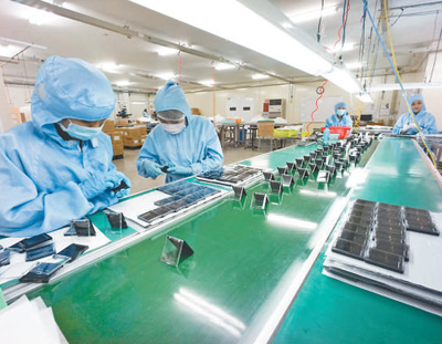 龍江工業(yè)園內(nèi),方正電機(jī)(越南)有限責(zé)任公司車間里的當(dāng)?shù)貑T工正在工作。
