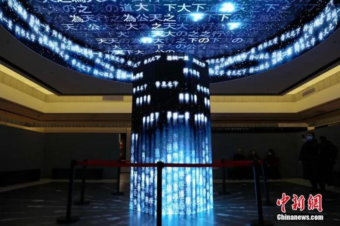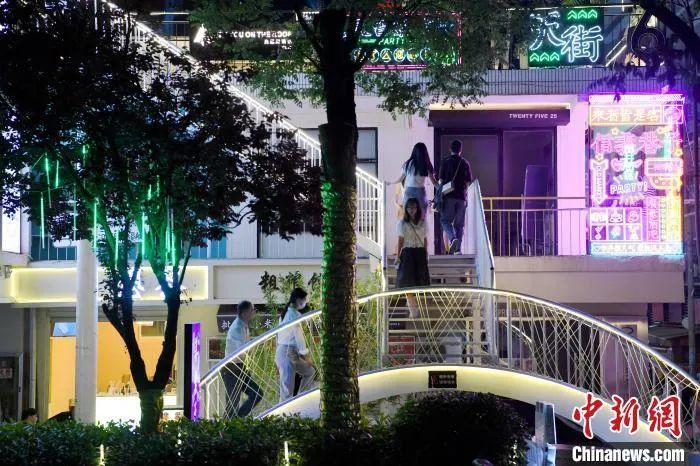圖為游客在西安大雁塔景區(qū)步行街游覽“詩詞長街”。 李一璠 攝