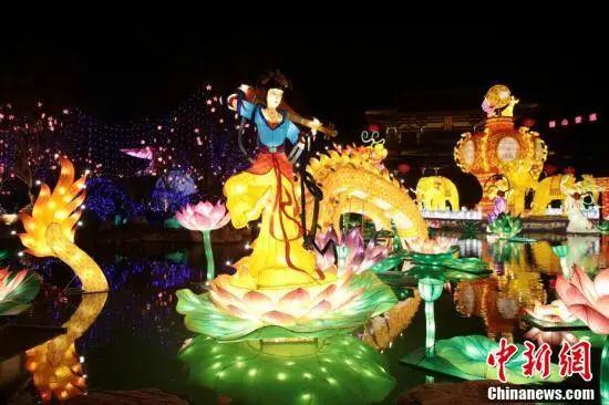 圖為西安華清宮景區(qū)內(nèi)的唐宮大型燈組。 張遠(yuǎn) 攝