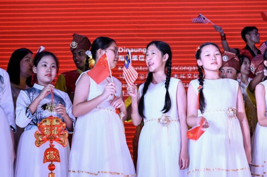 2024年1月28日,在馬來(lái)西亞中華大會(huì)堂總會(huì)大廈,演員們?cè)谖枧_(tái)上表演。為慶祝中國(guó)和馬來(lái)西亞建交50周年,“馬中友好之夜”暨2024馬來(lái)西亞中國(guó)青少年藝術(shù)節(jié)開(kāi)幕式28日晚在馬來(lái)西亞中華大會(huì)堂總會(huì)大廈舉辦。新華社記者 程一恒 攝
