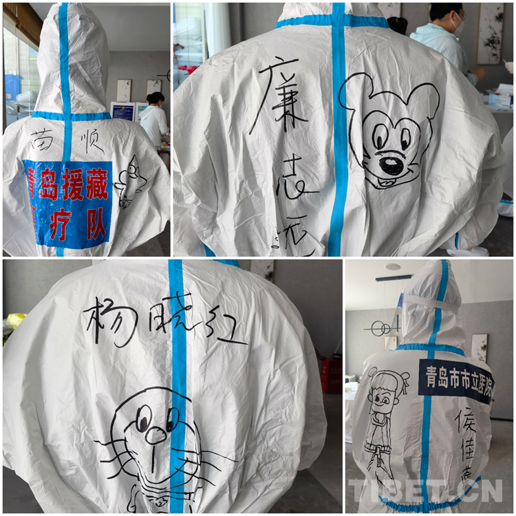 中國西藏網(wǎng)訊 青島援藏醫(yī)療隊(duì)自8月17日進(jìn)藏以來, 隊(duì)員們無論工作多累多難、高原反應(yīng)有多難受,都沒有一句怨言,依然堅(jiān)持在西藏自治區(qū)日喀則市戰(zhàn)“疫”一線。工作之余,來自青島市市立醫(yī)院本部ICU的鐘翔宇發(fā)揮出了她的“隱藏技能”——在醫(yī)療隊(duì)的“大白”身上畫上漫畫,用表情包背到身上的方式給隊(duì)友們加油鼓勁兒。身著漫畫“戰(zhàn)袍”的隊(duì)員們斗志昂揚(yáng),朝氣蓬勃,互相鼓勵(lì)幫助,完成了一天天的工作任務(wù)。而這些古靈精怪的漫畫,在戰(zhàn)“疫”一線也成了一道靚麗的風(fēng)景線。(中國西藏網(wǎng) 記者/次旦拉姆 由桑珠孜區(qū)融媒體中心供稿)