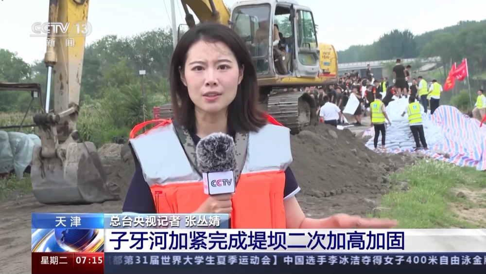 總臺央視記者 張叢婧:可以看到,現(xiàn)場的500多名搶險(xiǎn)救援人員正在對這段大堤進(jìn)行持續(xù)加高加固作業(yè)。筑牢防洪堤壩,保障洪水繞城而走,安全有序入海。