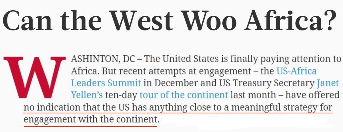 △世界報業(yè)辛迪加網站:雖然非洲以其快速增長的人口、豐富的資源以及龐大的聯(lián)合國會員國席位數(shù)目重新受到了美國的關注,但沒有任何跡象表明美國已制定出與非洲加強接觸的有意義的戰(zhàn)略。
