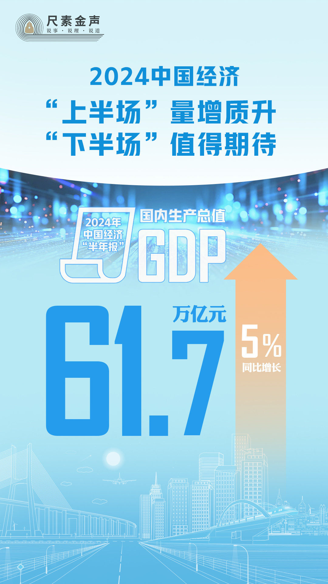 正在北京舉行的黨的二十屆三中全會(huì),將重點(diǎn)研究進(jìn)一步全面深化改革、推進(jìn)中國(guó)式現(xiàn)代化。改革的“時(shí)代新篇”萬(wàn)眾矚目,中國(guó)的發(fā)展也令人高度關(guān)注——同日,國(guó)家統(tǒng)計(jì)局發(fā)布2024年中國(guó)經(jīng)濟(jì)“半年報(bào)”:國(guó)內(nèi)生產(chǎn)總值(GDP)61.7萬(wàn)億元,同比增長(zhǎng)5%。結(jié)合二季度國(guó)內(nèi)外形勢(shì),預(yù)計(jì)上半年中國(guó)經(jīng)濟(jì)增速仍將保持領(lǐng)先,仍是世界經(jīng)濟(jì)增長(zhǎng)的重要引擎和穩(wěn)定力量。