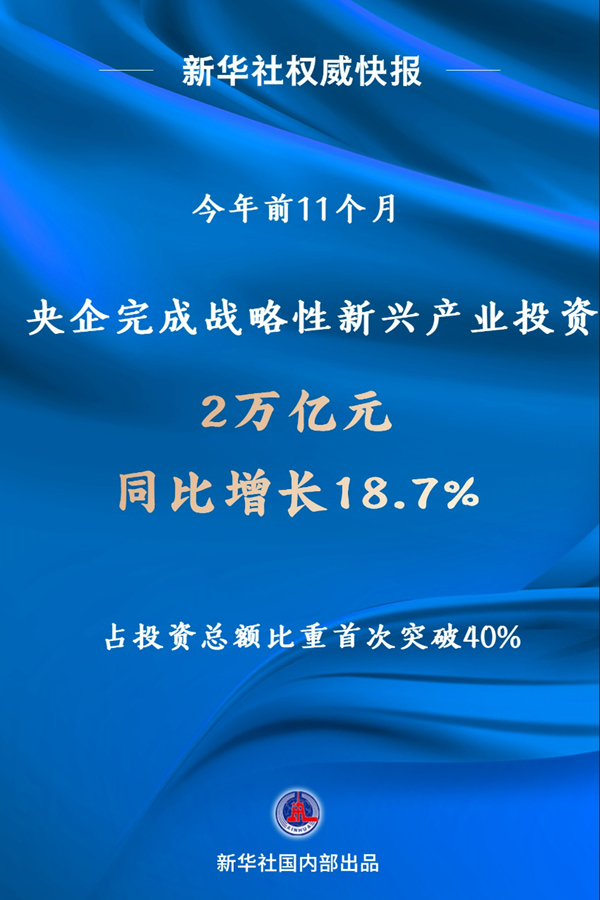 今年以來,中央企業(yè)堅守實體經(jīng)濟(jì),在新興產(chǎn)業(yè)的布局節(jié)奏加快,1至11月完成戰(zhàn)略性新興產(chǎn)業(yè)投資2萬億元,同比增長18.7%,占投資總額比重首次突破40%。