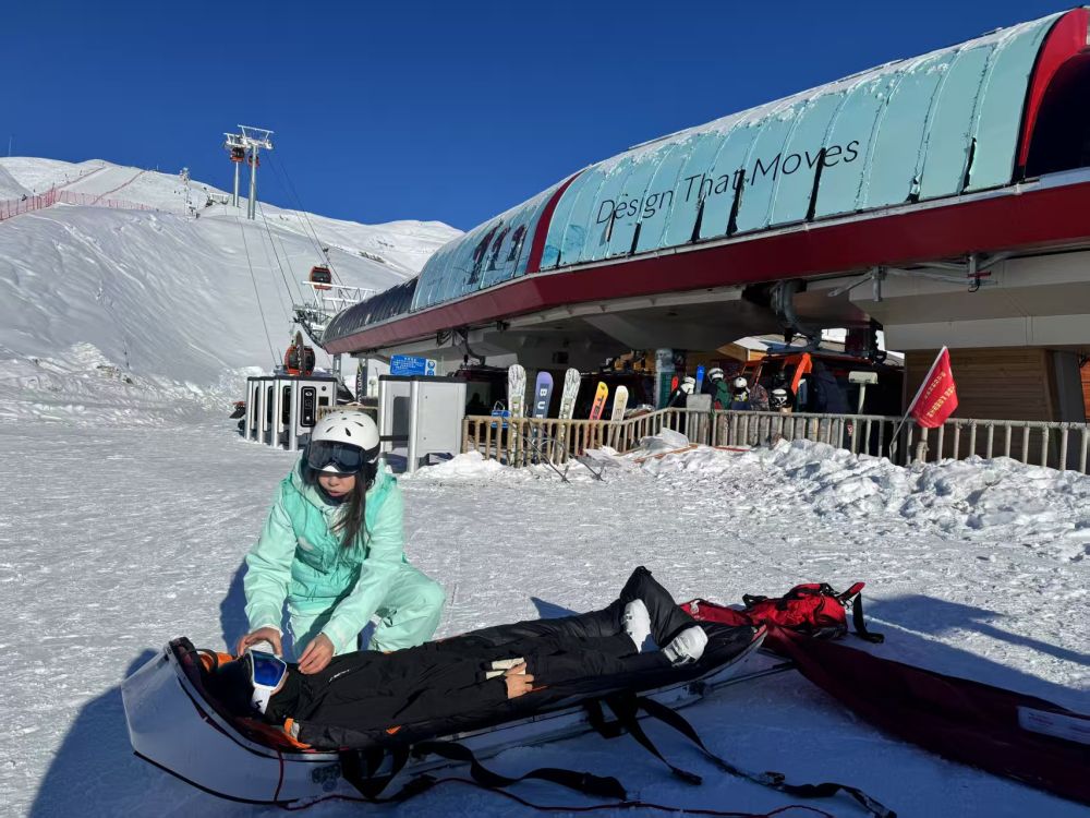 一次巡邏時(shí),帕提曼看到一名雪友橫躺在雪道中間,雪板被甩出很遠(yuǎn),上前查看后發(fā)現(xiàn)其大腿骨折。她立即進(jìn)行夾板固定、紗布包扎等操作,隨后協(xié)助轉(zhuǎn)運(yùn)傷員。