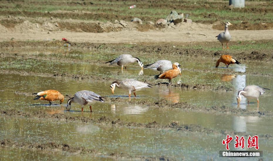 藏南谷地迎來(lái)越冬候鳥 斑頭雁、赤麻鴨等在碧水藍(lán)天間嬉戲覓食