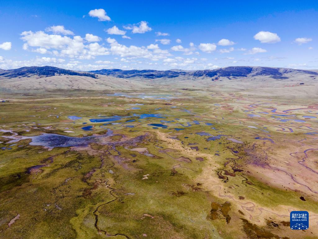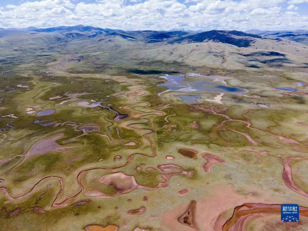 這是5月25日拍攝的拉妥濕地(無人機(jī)照片)。新華社記者 周荻瀟 攝
