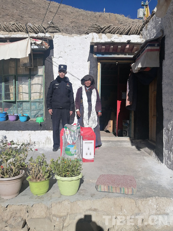 圖為達瓦次仁為曲瑪鄉(xiāng)曲瑪村孤寡老人送節(jié)前慰問