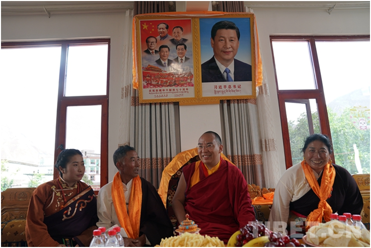 圖為班禪走訪多民族和諧家庭才仁尼增家 攝影:王淑