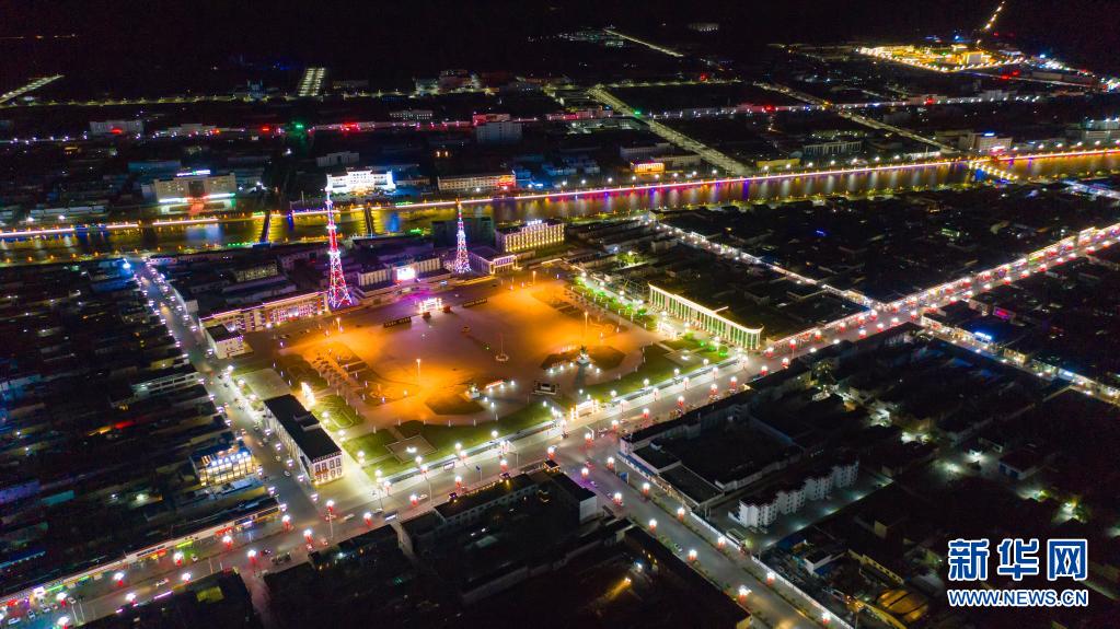 阿里獅泉河鎮(zhèn)夜景(2018年10月3日攝,無(wú)人機(jī)照片)。新華社發(fā)(貢覺(jué)群培攝)