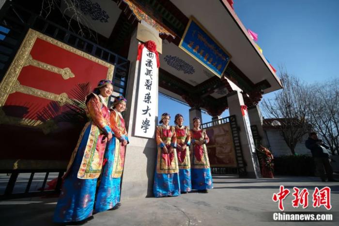 2018年12月28日,西藏藏醫(yī)學院更名為西藏藏醫(yī)藥大學揭牌儀式在拉薩舉行。據(jù)悉,西藏藏醫(yī)學院成立于1989年9月,是世界唯一單獨設(shè)置的藏醫(yī)藥高等學校。中新社記者 何蓬磊 攝