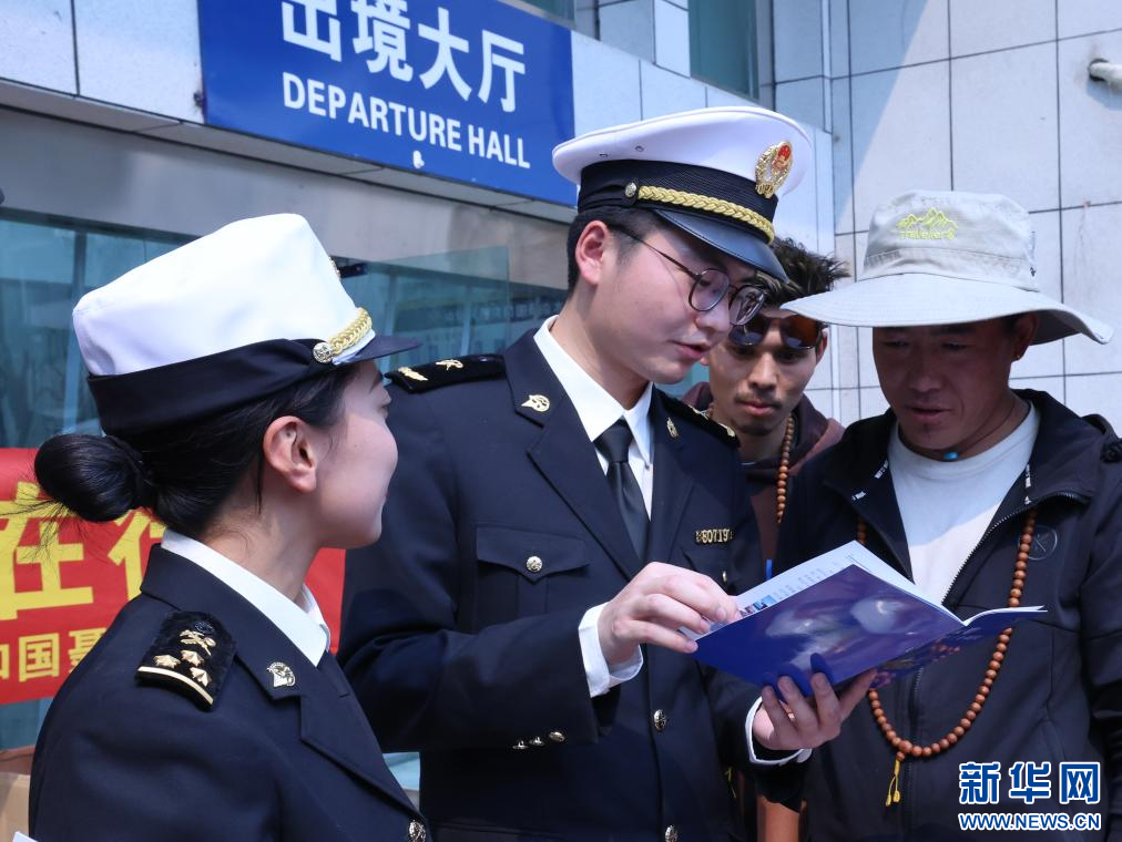 拉薩海關所屬聶拉木海關工作人員開展普法宣傳。(拉薩海關供圖)
