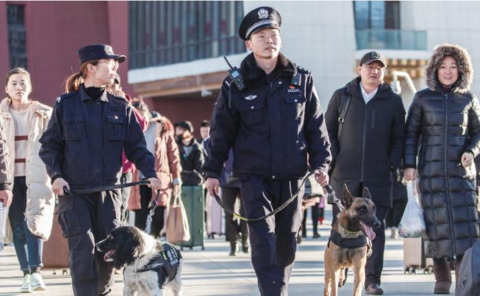 拉薩交警也將聯(lián)合多部門采取多項措施,保障全市道路交通安全暢通。此外,拉薩鐵路公安處也將多措并舉備戰(zhàn)春運,除了執(zhí)勤民警外,拉薩火車站還配備了經(jīng)過專業(yè)訓練的警犬執(zhí)行安保任務(wù)。圖片來源:西藏商報