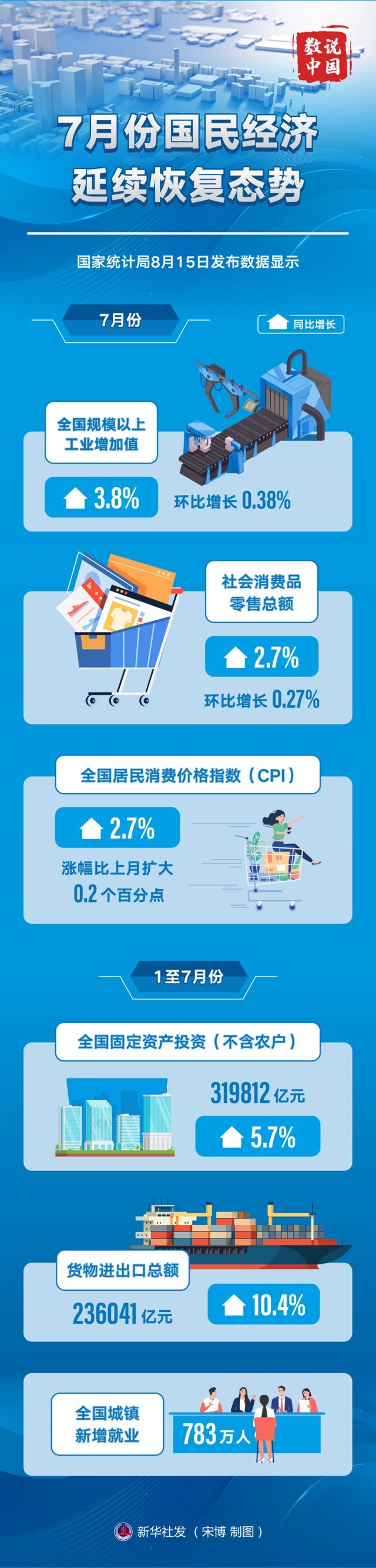 新華社北京8月15日電 題:抓住經(jīng)濟(jì)恢復(fù)關(guān)鍵期,鞏固經(jīng)濟(jì)恢復(fù)基礎(chǔ)——聚焦前7個(gè)月國(guó)民經(jīng)濟(jì)運(yùn)行數(shù)據(jù)