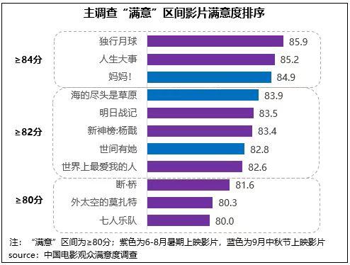 中國(guó)電影觀眾滿意度調(diào)查:近三個(gè)月15部影片中有13部進(jìn)入“滿意”區(qū)間