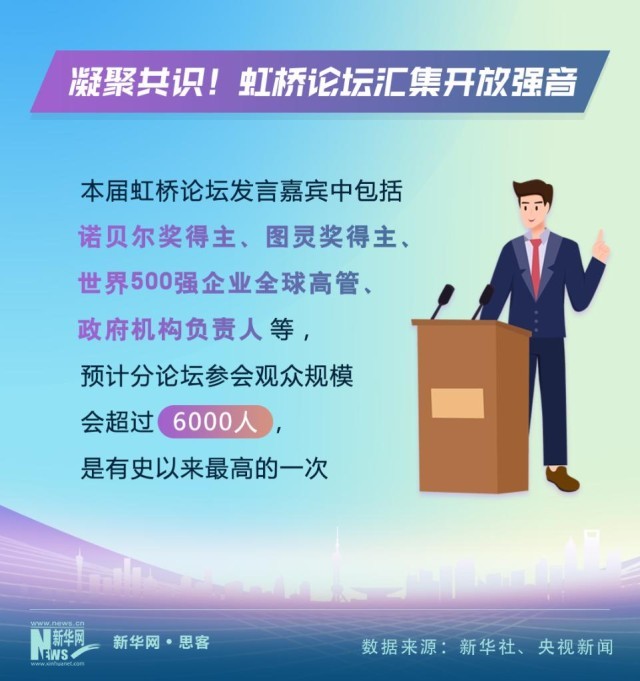 虹橋國際經(jīng)濟論壇是中國國際進口博覽會的重要組成部分。隨著進博會的“朋友圈”越來越大,虹橋論壇的影響力也不斷提升。今年的論壇以“攜手促發(fā)展,開放贏未來”為主題,發(fā)言嘉賓中包括了諾貝爾獎得主、圖靈獎得主、世界500強企業(yè)全球高管、政府機構(gòu)負責人等等,預計分論壇參會觀眾規(guī)模也會超過6000人,是有史以來最高的一次。
