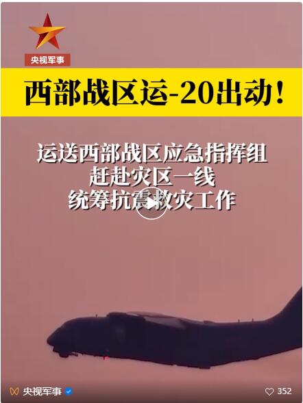 今天上午9時50分左右,西部戰(zhàn)區(qū)空軍1架運-20從西南某軍用機場起飛,運送西部戰(zhàn)區(qū)應(yīng)急指揮組趕赴災(zāi)區(qū)一線,統(tǒng)籌抗震救災(zāi)工作。運-20已于11點左右抵達蘭州中川機場。