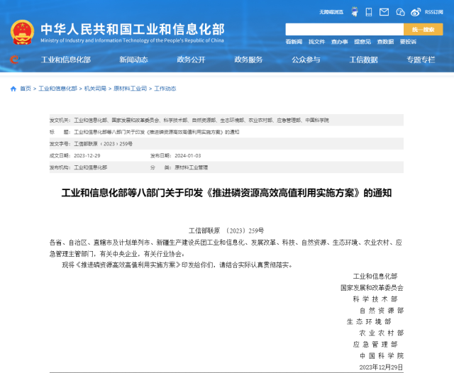 央視網(wǎng)消息:工信部等八部門印發(fā)《推進磷資源高效高值利用實施方案》,其中提出,堅持分類施策,推進產(chǎn)品結(jié)構(gòu)調(diào)整。嚴格控制磷銨、黃磷等行業(yè)新增產(chǎn)能。促進磷肥保供穩(wěn)價,優(yōu)先保障磷肥企業(yè)磷礦需求,引導企業(yè)科學排產(chǎn)、維持合理庫存、穩(wěn)定市場預期,支持骨干企業(yè)做優(yōu)做強,積極發(fā)展新型高效磷肥品種。擴大濕法凈化磷酸及黃磷精深加工生產(chǎn)能力,延伸發(fā)展功能性磷酸鹽等高附加值磷化學品,推動產(chǎn)業(yè)發(fā)展方式由規(guī)模擴張向精細化、專用化、系列化的服務型制造轉(zhuǎn)變。