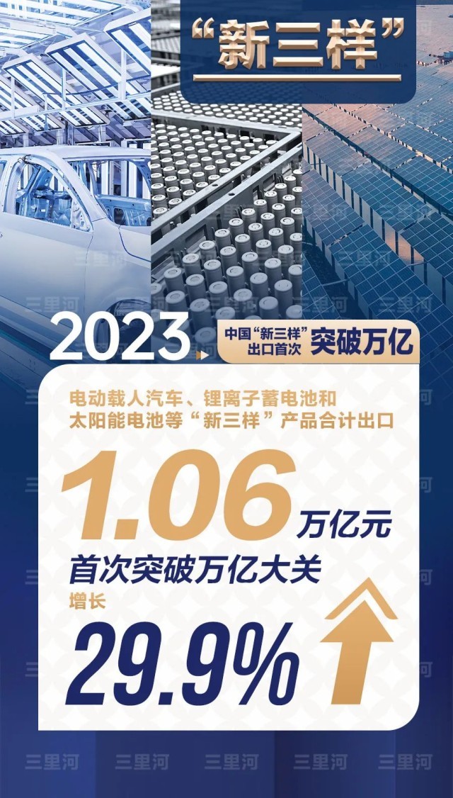 活力來(lái)自新動(dòng)能——制造業(yè)技改投資增長(zhǎng)3.8%,高技術(shù)產(chǎn)業(yè)投資增長(zhǎng)10.3%,快于全部固定資產(chǎn)投資的增速。2023年電動(dòng)載人汽車(chē)、鋰電池和太陽(yáng)能電池等“新三樣”產(chǎn)品合計(jì)出口1.06萬(wàn)億元,首次突破萬(wàn)億大關(guān)。中國(guó)經(jīng)濟(jì)在加快培育新質(zhì)生產(chǎn)力中不斷發(fā)展壯大。