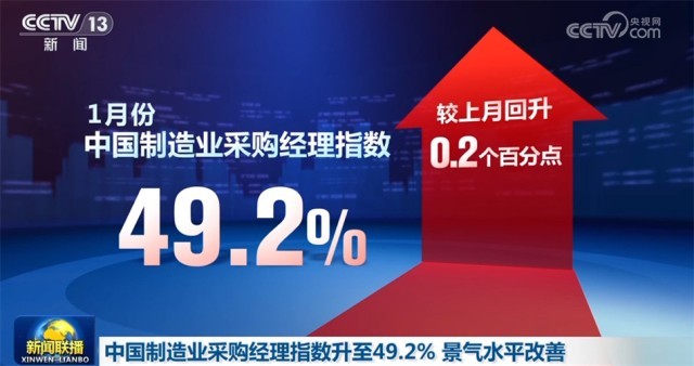 中國(guó)物流與采購(gòu)聯(lián)合會(huì)、國(guó)家統(tǒng)計(jì)局服務(wù)業(yè)調(diào)查中心1月31日公布,1月份中國(guó)制造業(yè)采購(gòu)經(jīng)理指數(shù)為49.2%,較上月回升0.2個(gè)百分點(diǎn),結(jié)束了連續(xù)3個(gè)月下降勢(shì)頭,景氣水平有所改善。