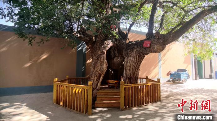 圖為阿河灘地質(zhì)文化村樹齡高達(dá)800年的空心古榆樹?!埡v?攝