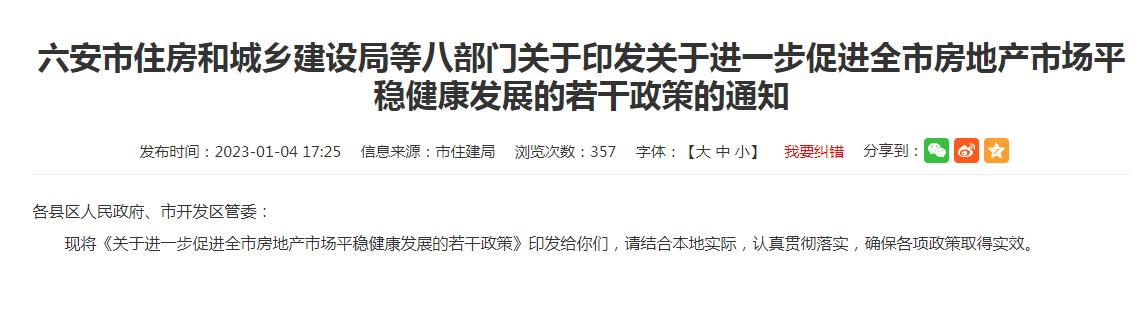 安徽省六安市住房和城鄉(xiāng)建設(shè)局網(wǎng)站信息截圖。