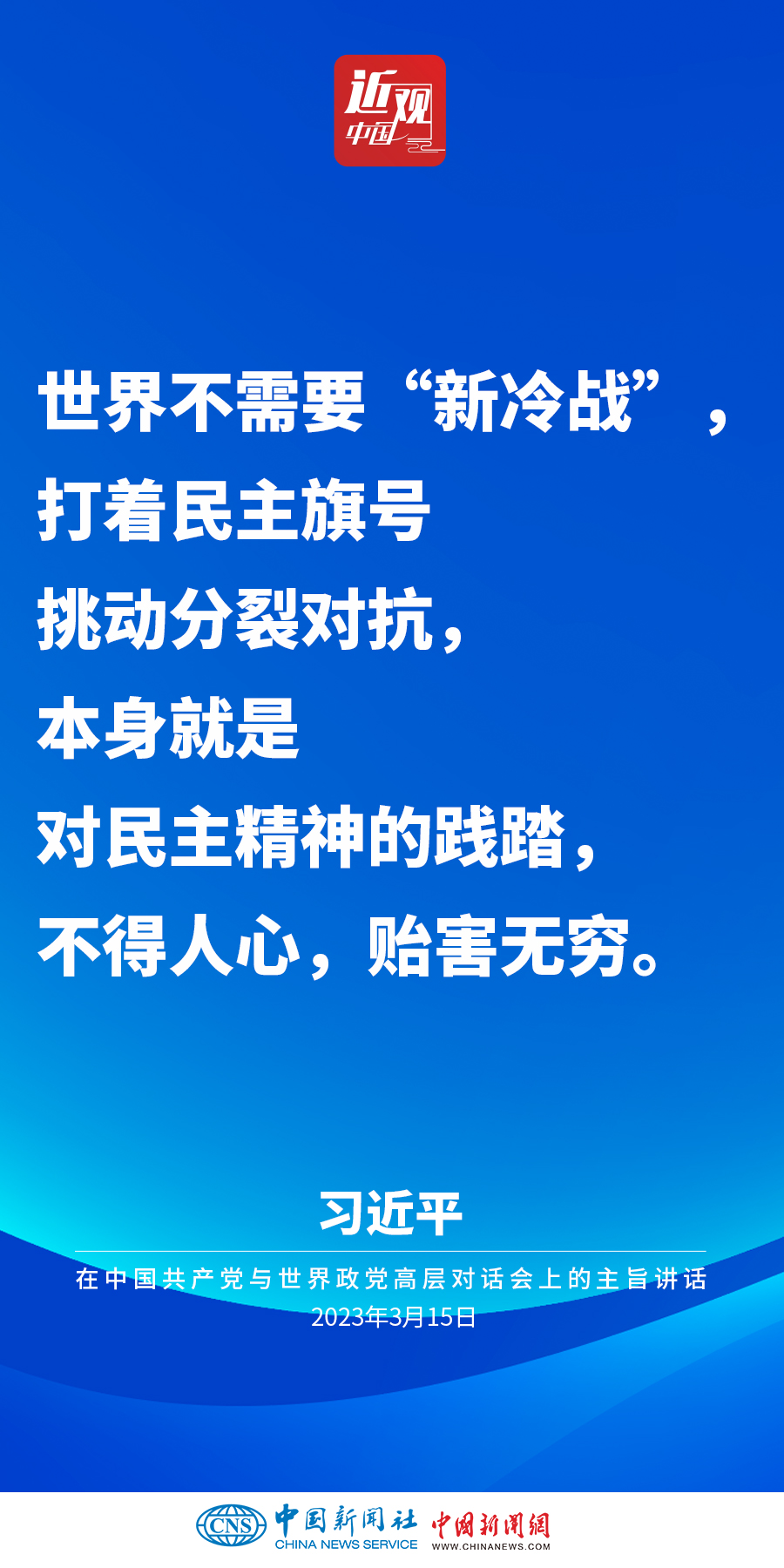 3月15日,中共中央總書記、國家主席習(xí)近平在北京出席中國共產(chǎn)黨與世界政黨高層對話會并發(fā)表主旨講話。他強(qiáng)調(diào)——