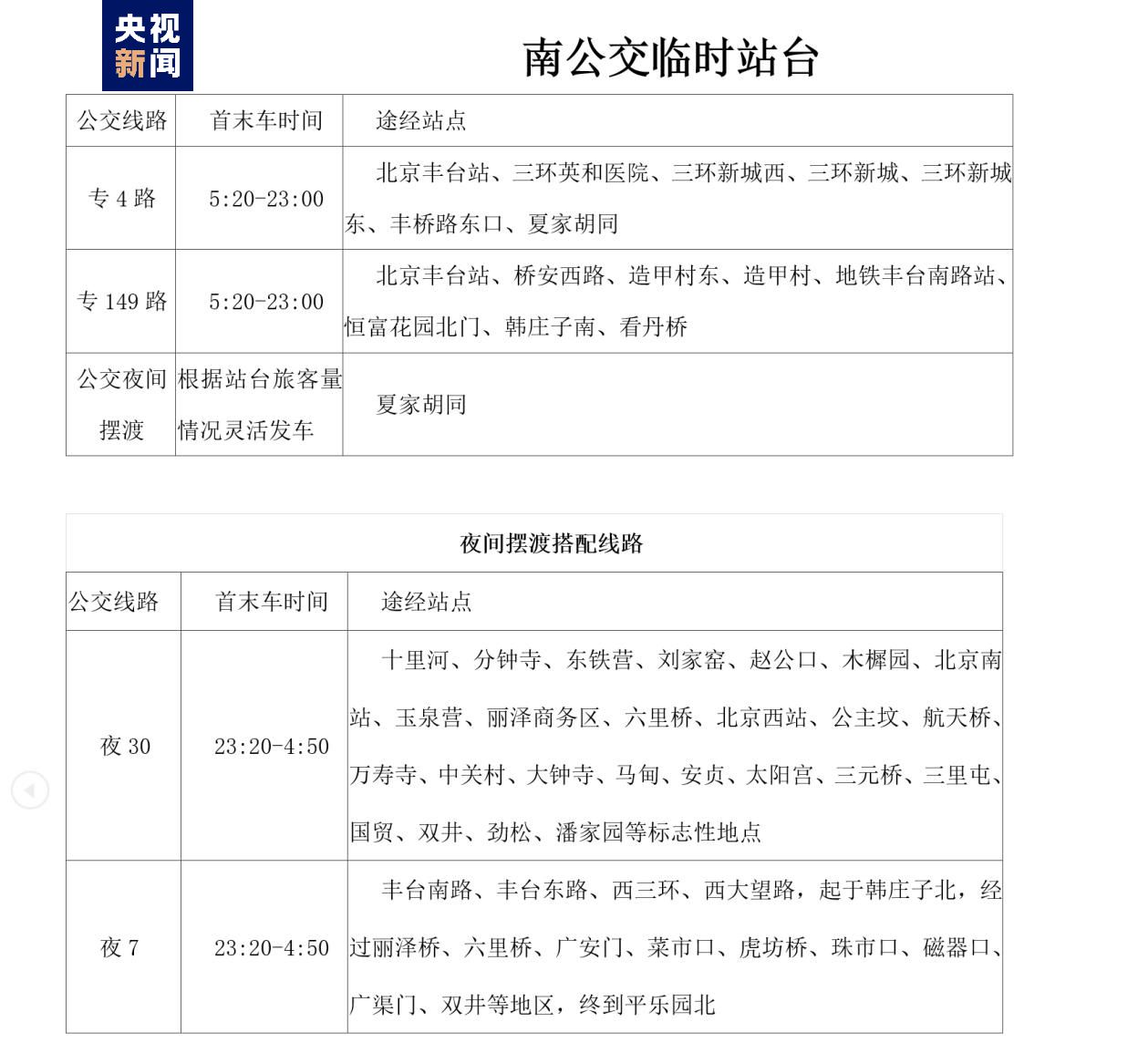 0時(shí)至5時(shí),北京豐臺站,在出租車調(diào)度站及南廣場臨時(shí)公交站臺區(qū)域設(shè)有免費(fèi)擺渡車幫助旅客離站,共計(jì)兩個(gè)方向,具體如下: