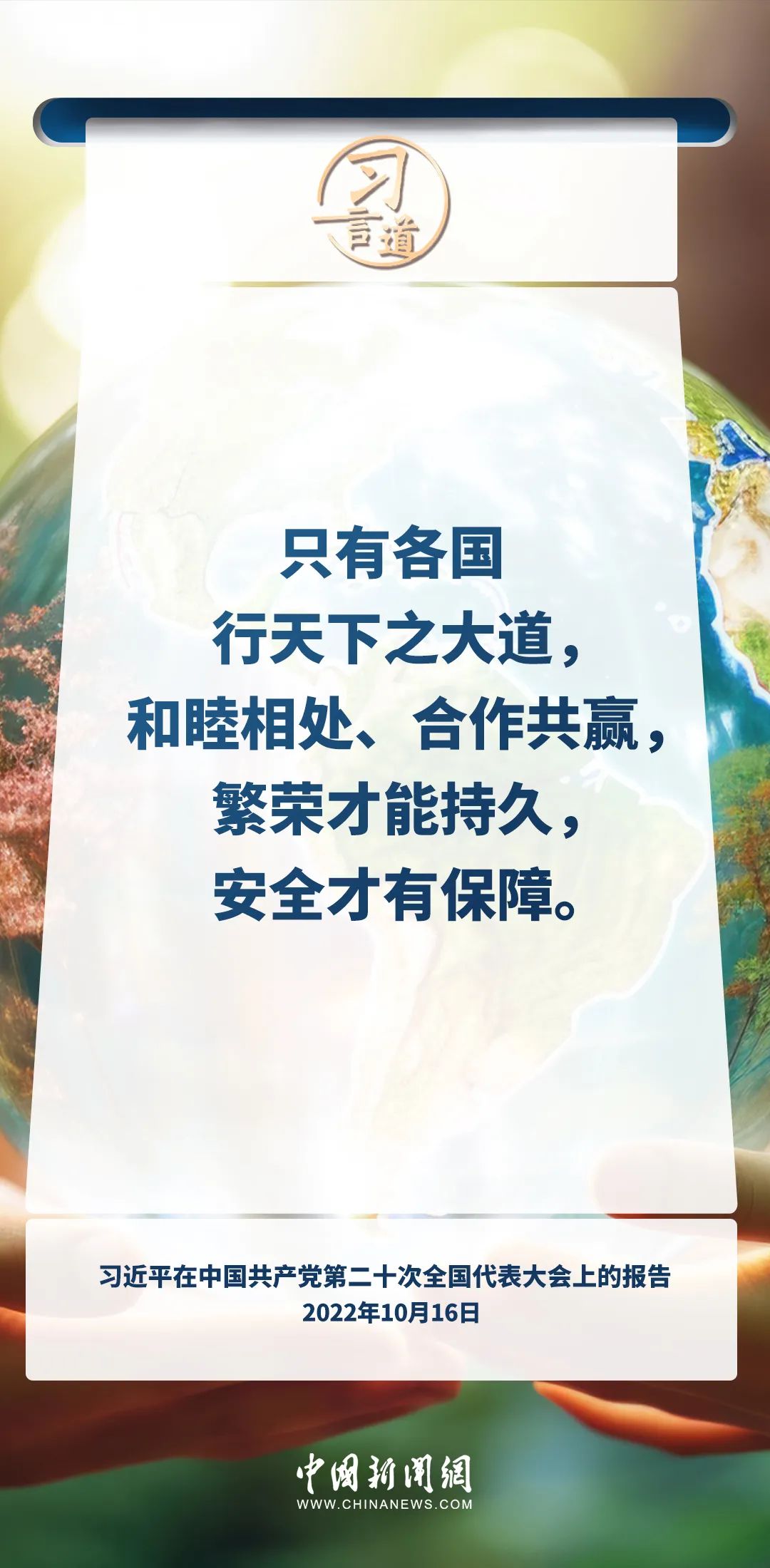 世界好,中國(guó)才會(huì)好;中國(guó)好,世界會(huì)更好。習(xí)近平主席在多個(gè)重要場(chǎng)合對(duì)人類命運(yùn)共同體理念進(jìn)行全面深刻論述,強(qiáng)調(diào)開(kāi)放包容、合作共贏才是人間正道。