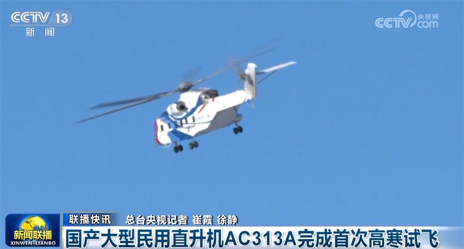 航空工業(yè)集團1月31日宣布,我國自主研制的大型民用直升機AC313A在漠河完成了首次高寒試飛,對直升機極限飛行速度、動力系統(tǒng)的低溫啟動試驗等進行了驗證。AC313A直升機可滿足我國全疆域范圍內的森林消防、搜索救援等多領域使用要求。