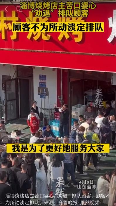 從當(dāng)?shù)厝俗园l(fā)形成“把周末燒烤讓給外地游客”的默契,到淄博交警燒烤攤暖心號(hào)召當(dāng)?shù)厝恕耙獰崆楹每停炎筒┻@張名片打出去”;從燒烤店主苦口婆心“勸退”排隊(duì)顧客,到燒烤店老板娘發(fā)出“不為賺錢,而是為家鄉(xiāng)榮譽(yù)而戰(zhàn)”的質(zhì)樸話語……