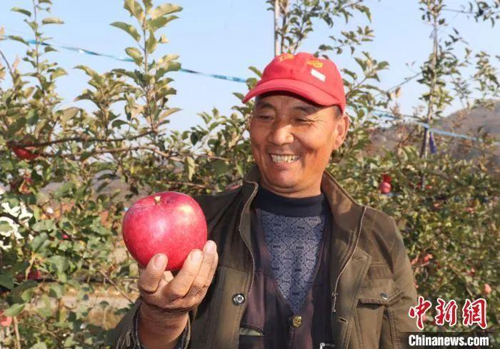 果農(nóng)展示沂源紅蘋果。李明芮 攝