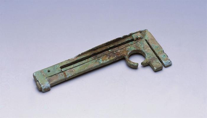 例如形似游標(biāo)卡尺的“銅卡尺”。據(jù)揚(yáng)州博物館網(wǎng)站介紹,1992年,它出土于邗江甘泉鎮(zhèn)姚灣村漢墓。