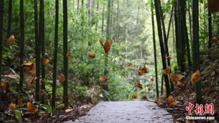 圖為蝴蝶谷林間道路上的箭環(huán)蝶。中新社記者 劉冉陽 攝