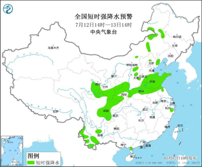 中新網(wǎng)7月12日電 據(jù)中央氣象臺網(wǎng)站消息,中央氣象臺7月12日10時繼續(xù)發(fā)布強(qiáng)對流天氣藍(lán)色預(yù)警:預(yù)計(jì)7月12日14時至13日14時,內(nèi)蒙古中東部、陜西中部、山東大部、河南東部、安徽北部、江蘇北部、四川盆地中西部等地的部分地區(qū)將有8-10級雷暴大風(fēng)或冰雹天氣;內(nèi)蒙古中東部、青海東部、甘肅東部和南部、陜西中南部、山西中北部、河北南部、山東、河南中北部、安徽北部、江蘇北部、四川盆地西部、云南西南部等地的部分地區(qū)將有短時強(qiáng)降水天氣,小時雨量30-50毫米,局地可達(dá)60毫米以上。