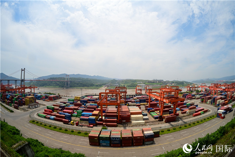 重慶果園港是我國內(nèi)河最大的鐵公水多式聯(lián)運樞紐港,也是西部陸海新通道的重要支點。圖為果園港全貌。人民網(wǎng)記者 苑基榮攝