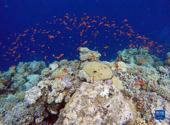 這是10月2日在埃及西奈半島達(dá)哈布藍(lán)洞內(nèi)拍攝的珊瑚和魚類。新華社記者 隋先凱 攝