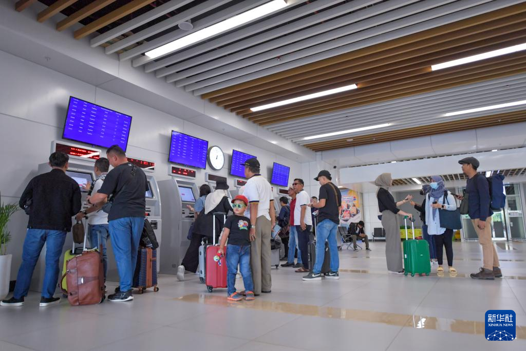 1月24日,在印度尼西亞雅加達哈利姆站候車大廳,乘客刷票前往站臺。新華社記者 徐欽 攝