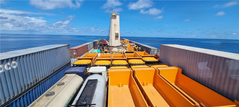 中蘇海運(yùn)直航貨輪滿載貨物。中國(guó)駐蘇里南大使館供圖