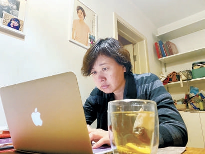 市民和女士居家辦公期間,通過手機(jī)互聯(lián)網(wǎng)和同事保持順暢溝通。本報(bào)記者 劉平攝