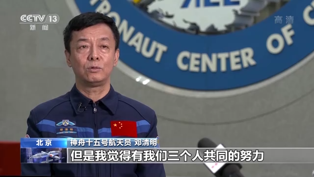 神舟十五號航天員 鄧清明:壓力是肯定有,但是我覺得有我們?nèi)齻€人共同的努力,有天地之間大協(xié)作,有地面的支持,這種壓力不算什么。我還是喜歡干有挑戰(zhàn)性的活,人生因奮斗而精彩,講的就是這個意思。
